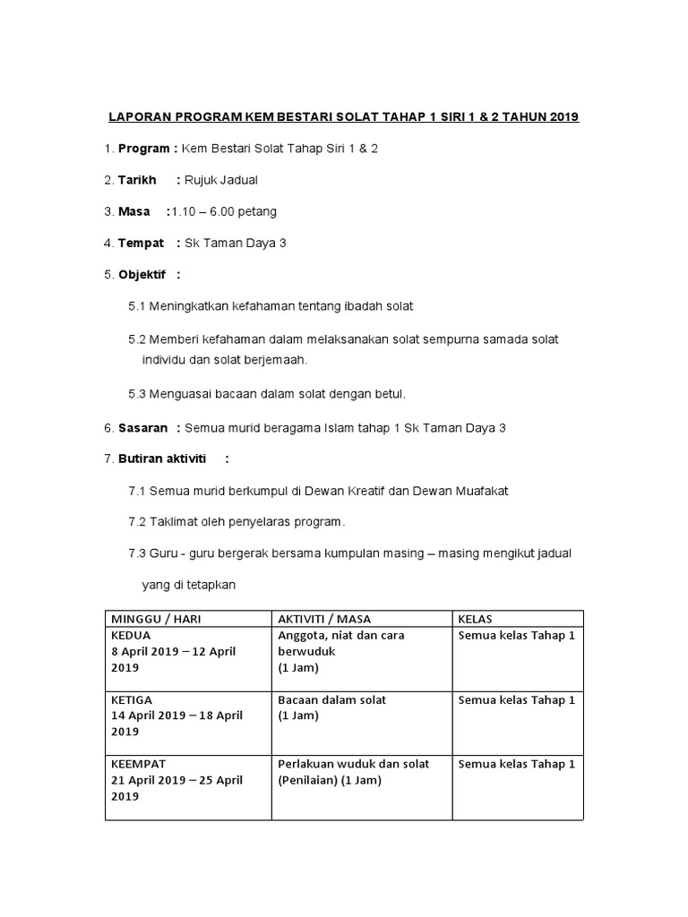 Contoh Laporan Program Kem Bestari Solat Pdf